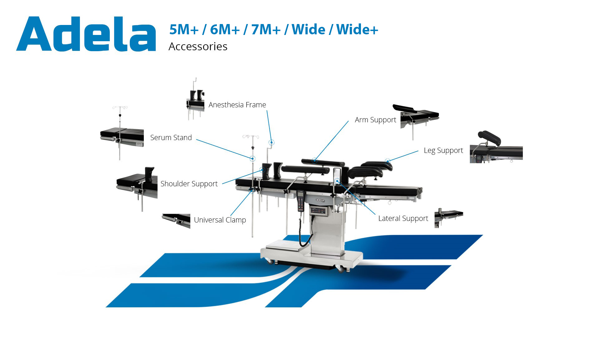 Possibility of positioning the table parallel to the floor (except for the head and foot pieces) by pressing one key on the hand control Possibility of saving the required positions in the memory
